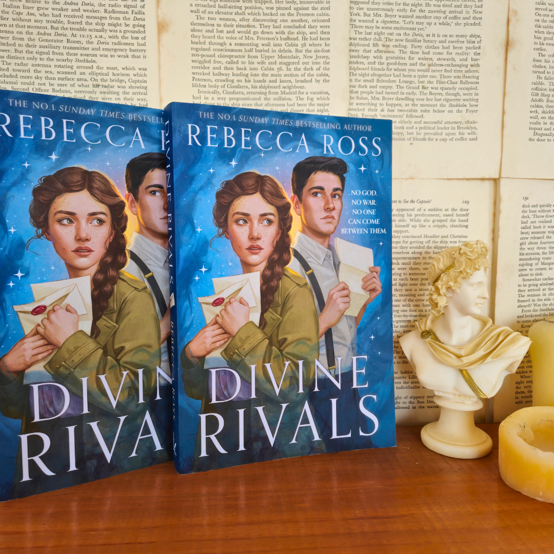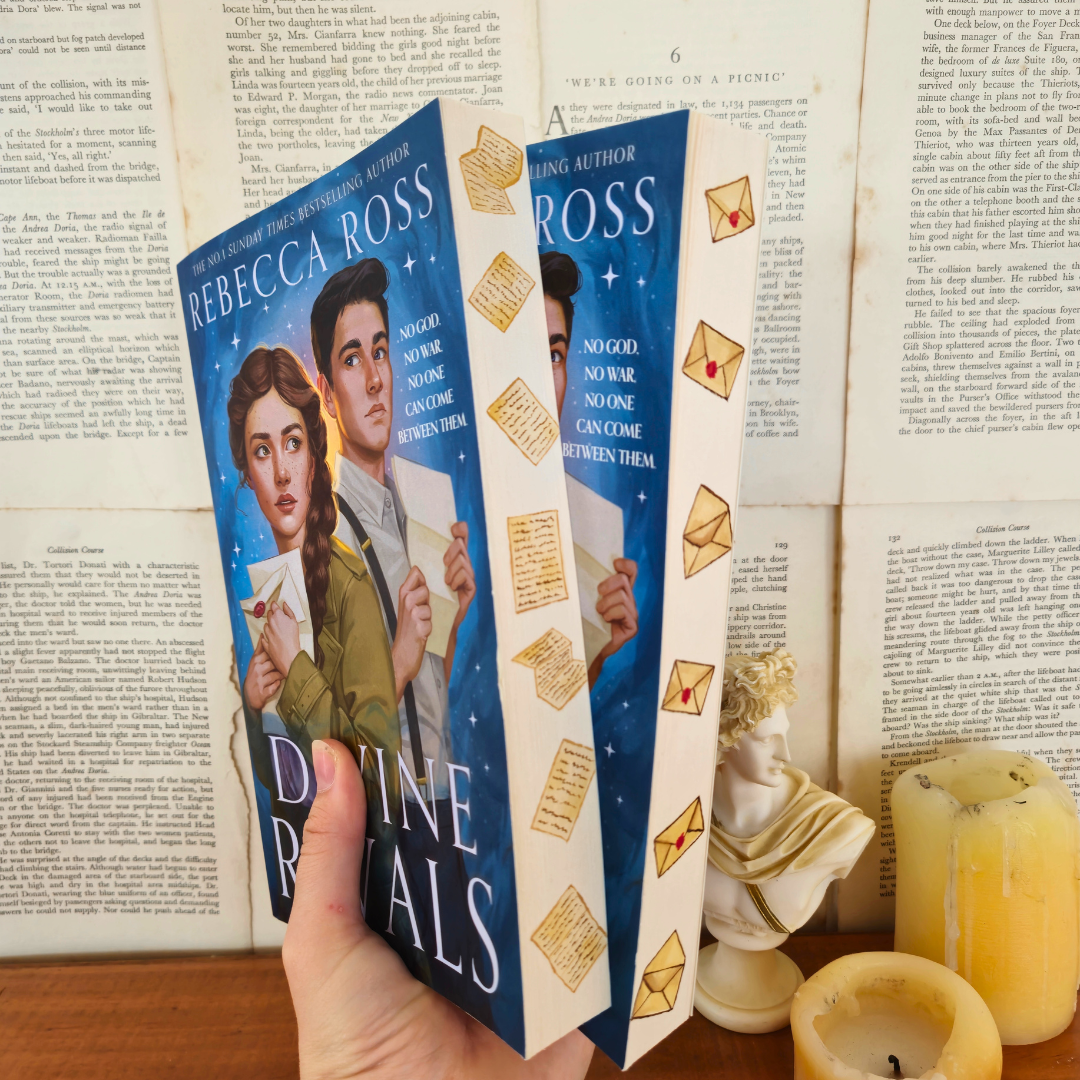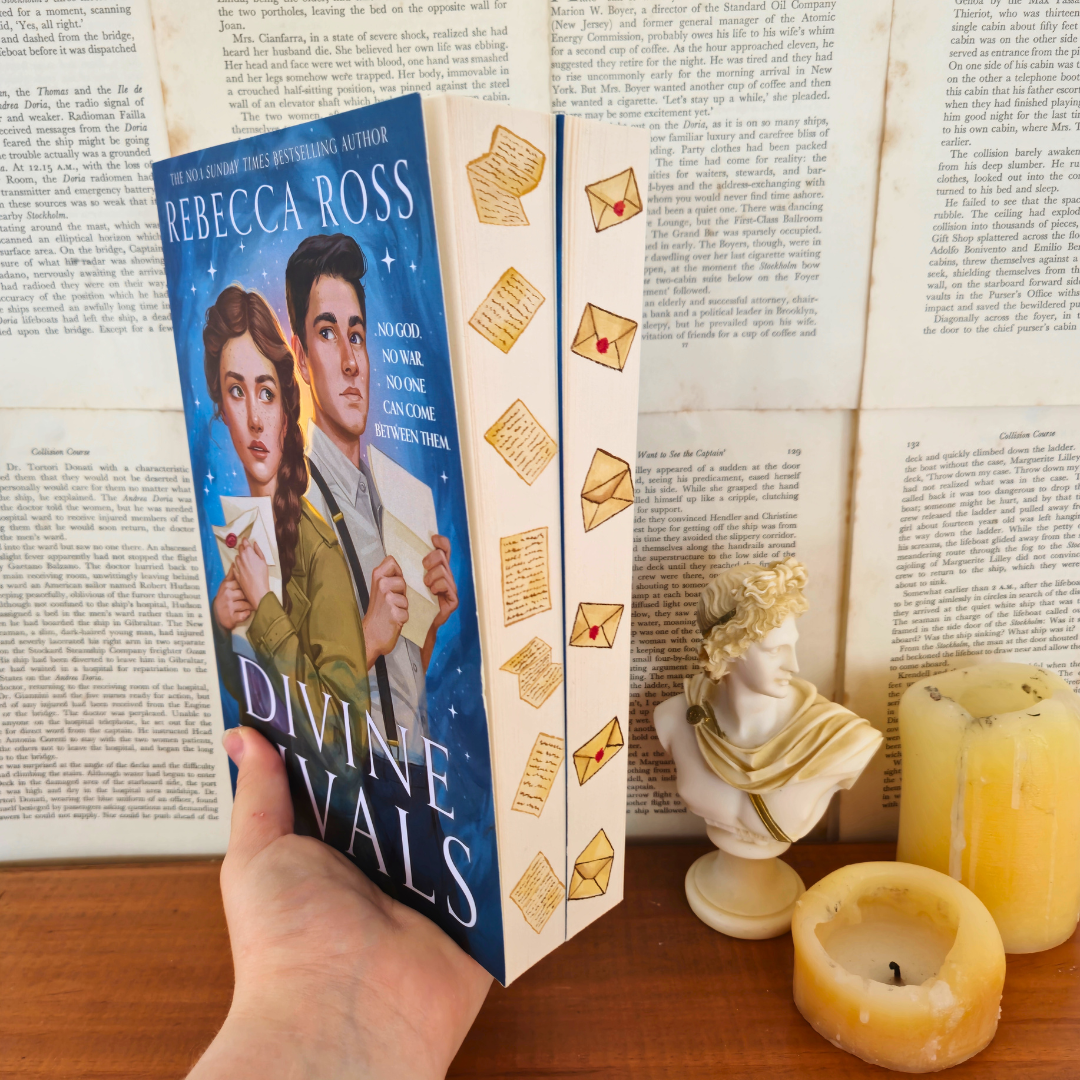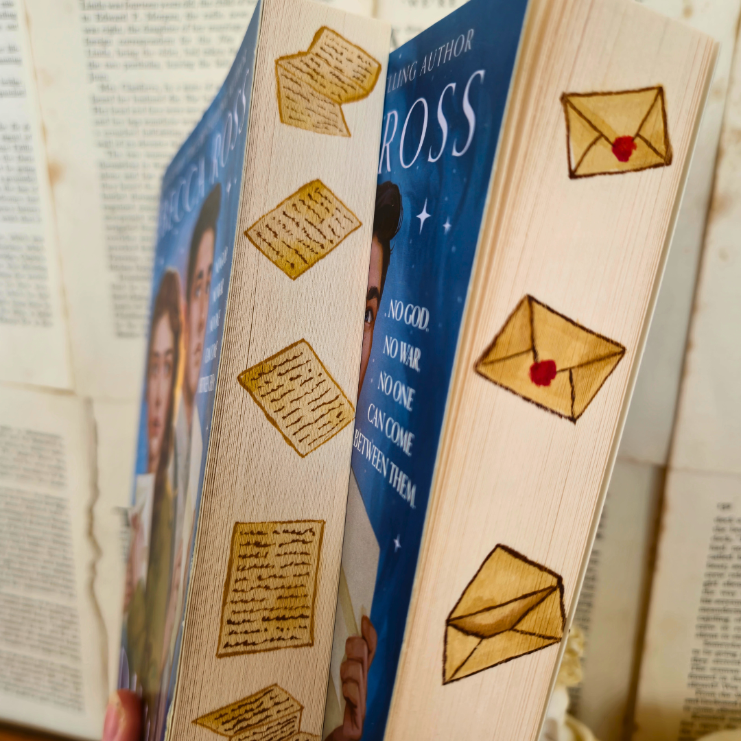 Il s'agit de 2 exemplaires des éditions exclusives de Divine Rivals de Rebecca Ross avec des bords peints à la main, l'un comportant une lettre et l'autre avec des enveloppes.