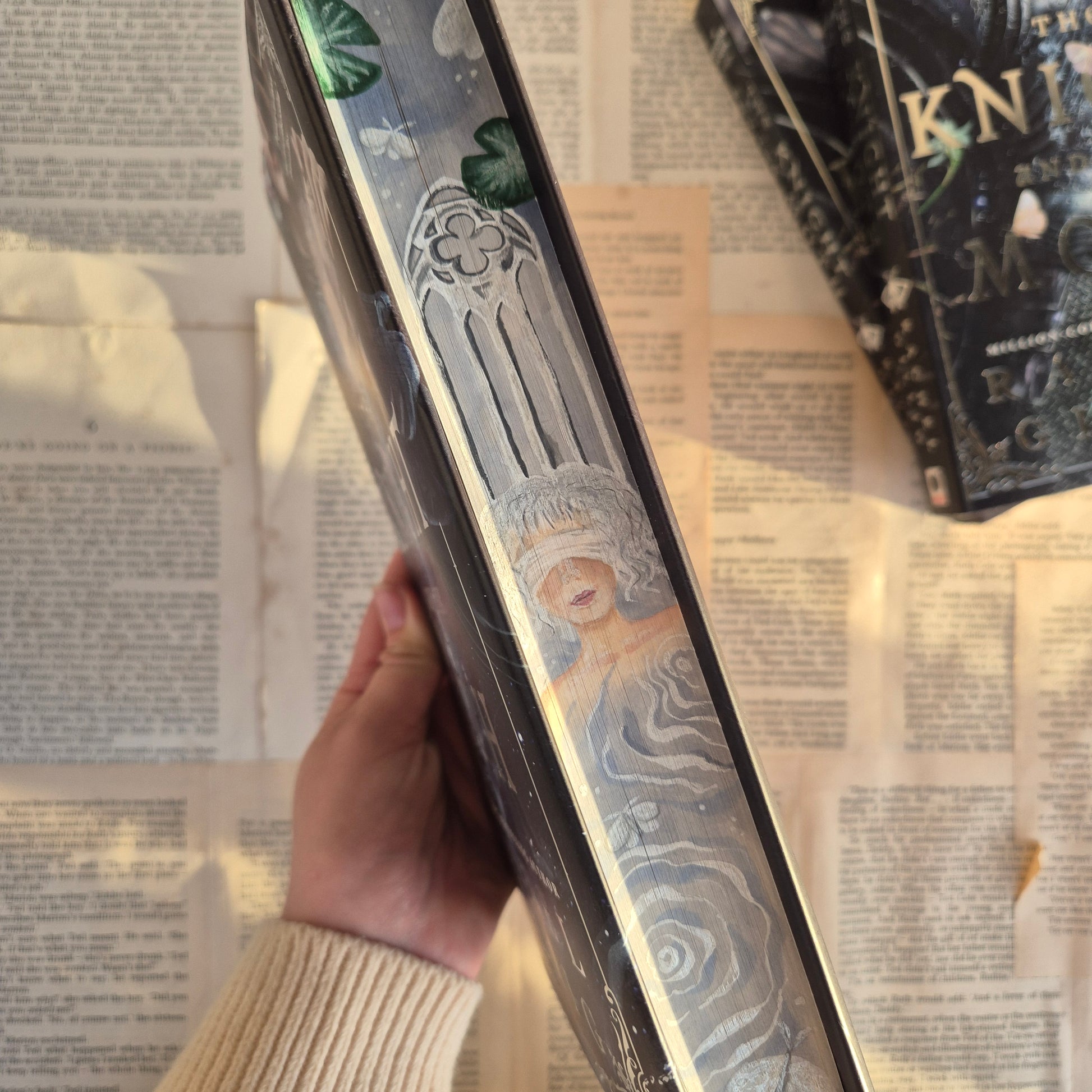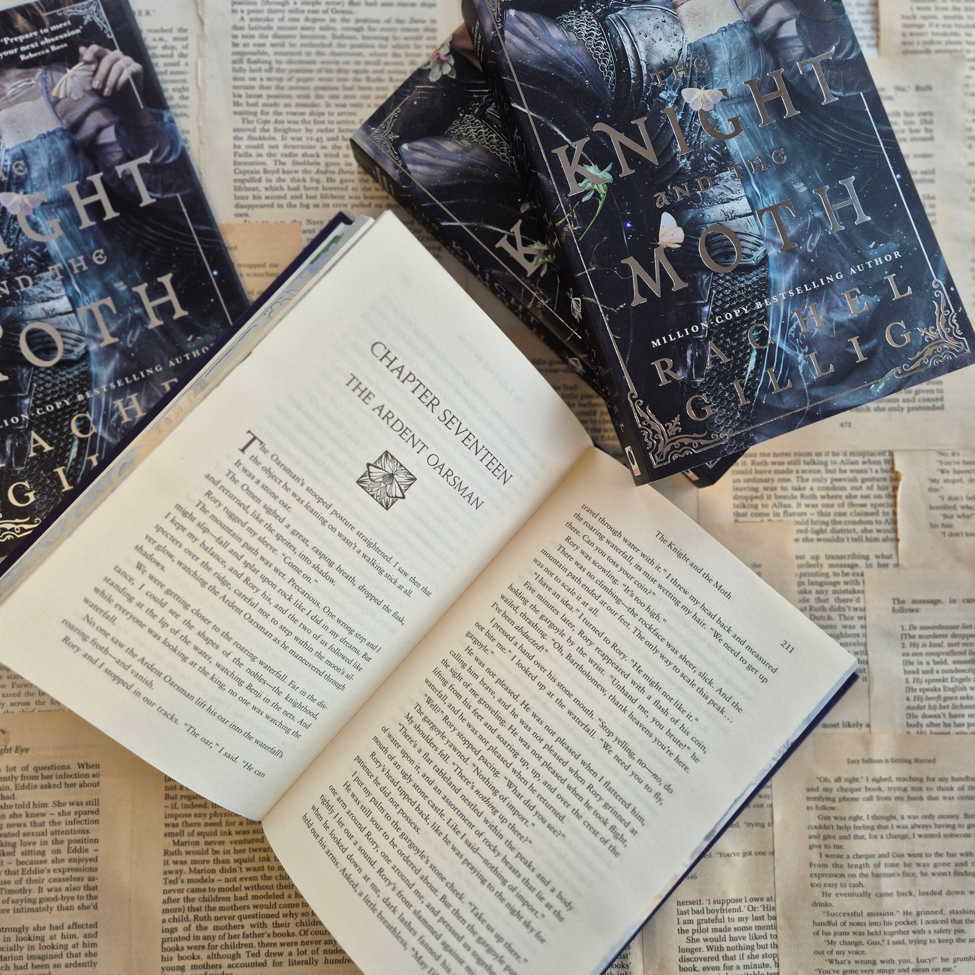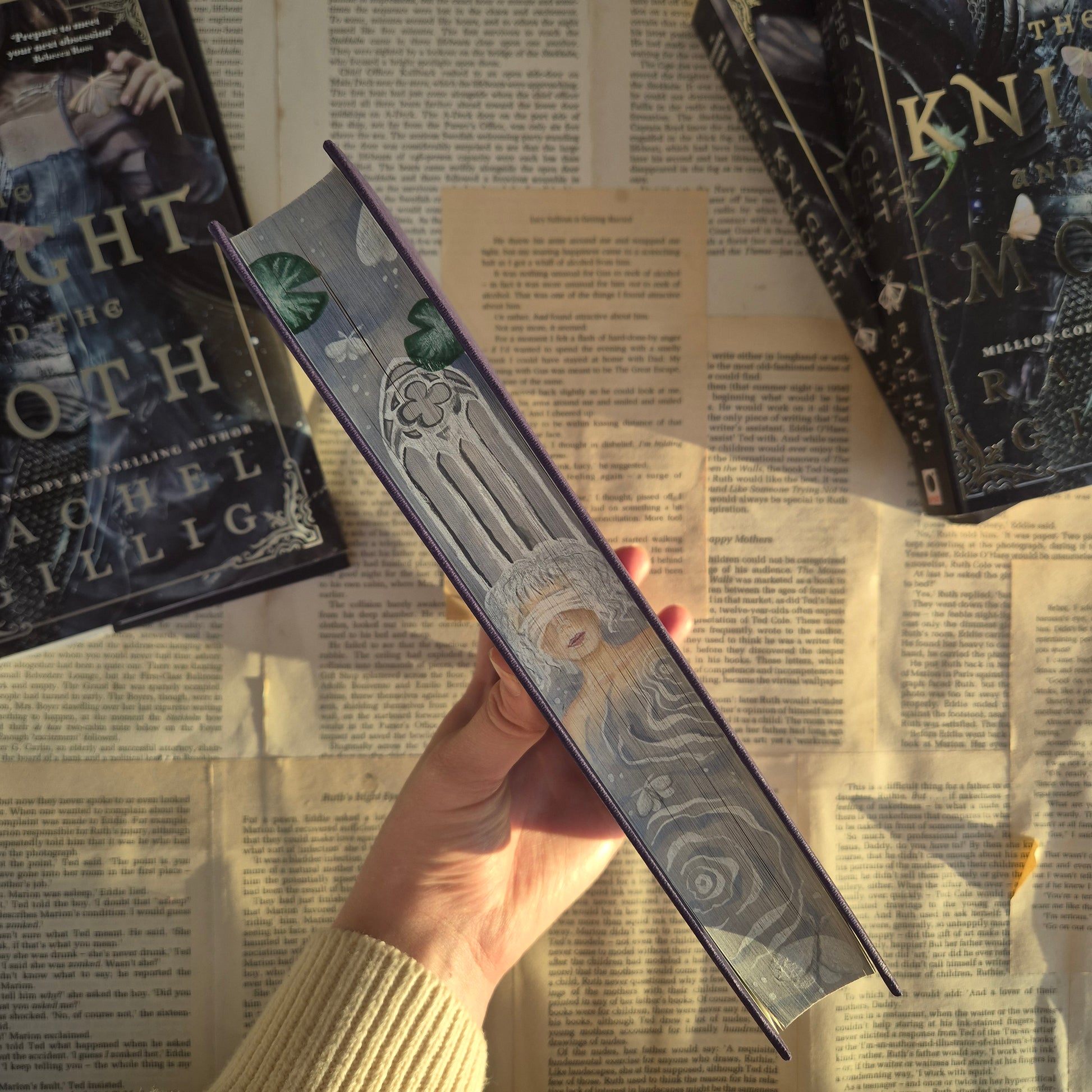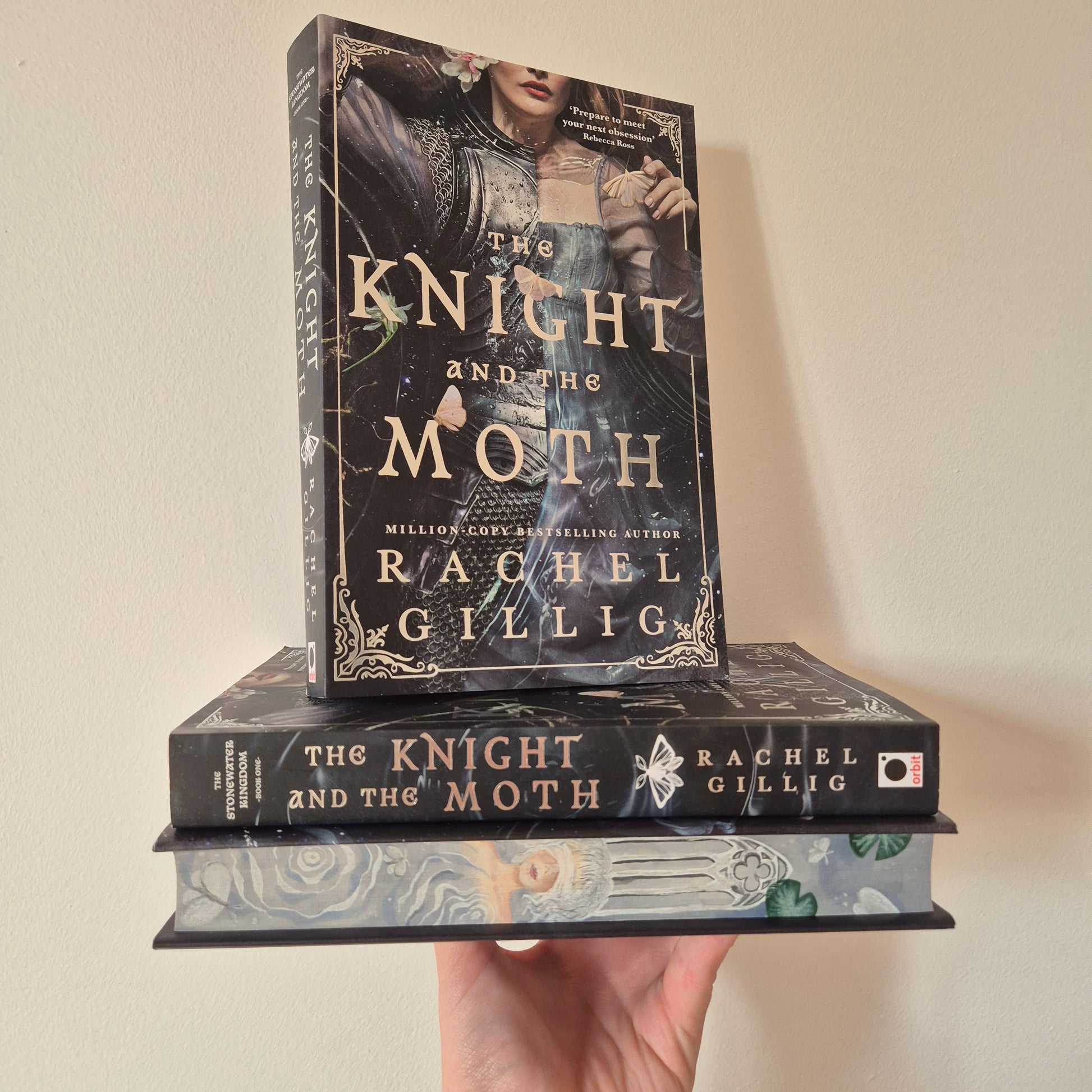 This is a watercolour hand-painted hardcover of Rachel Gillig's Knight and the Moth.