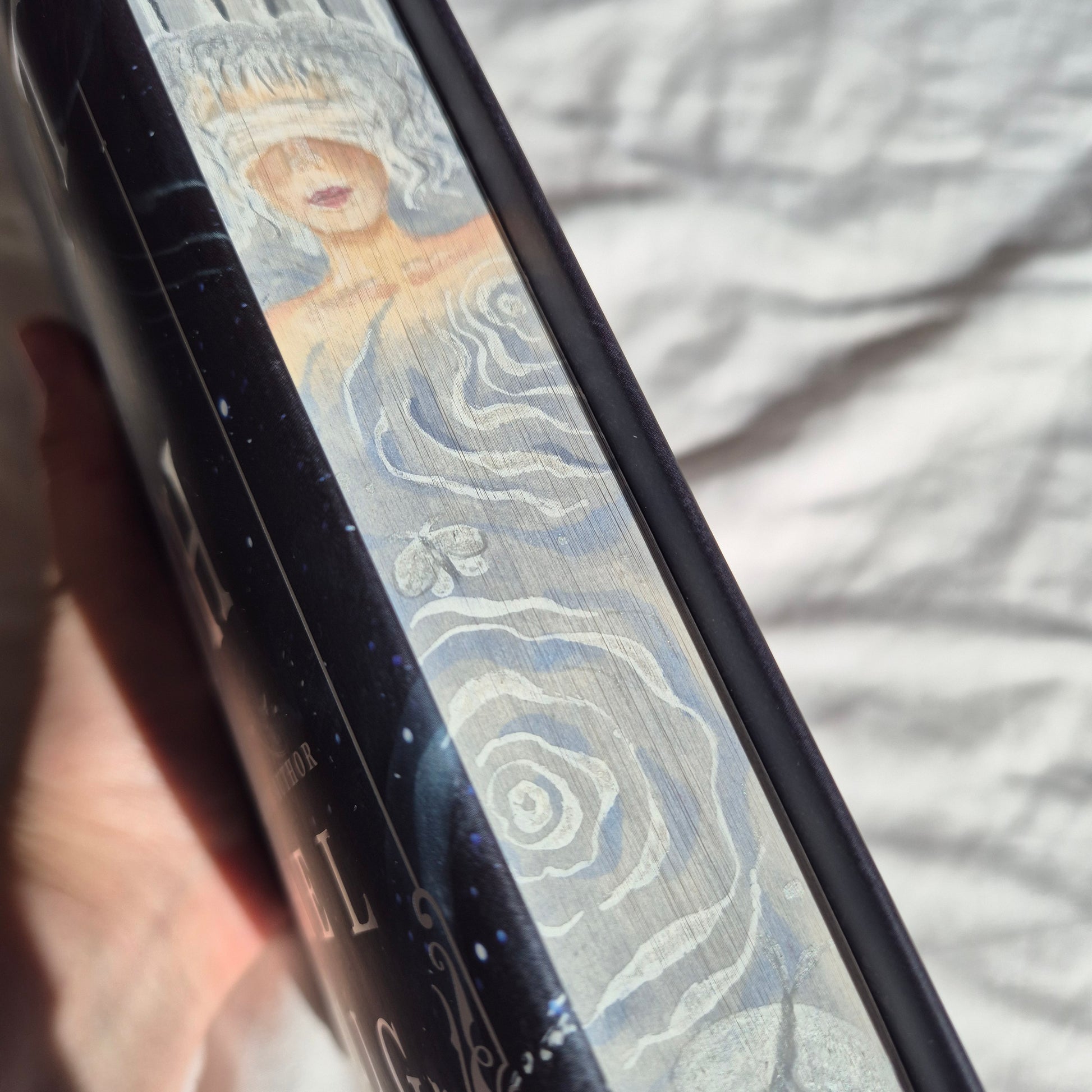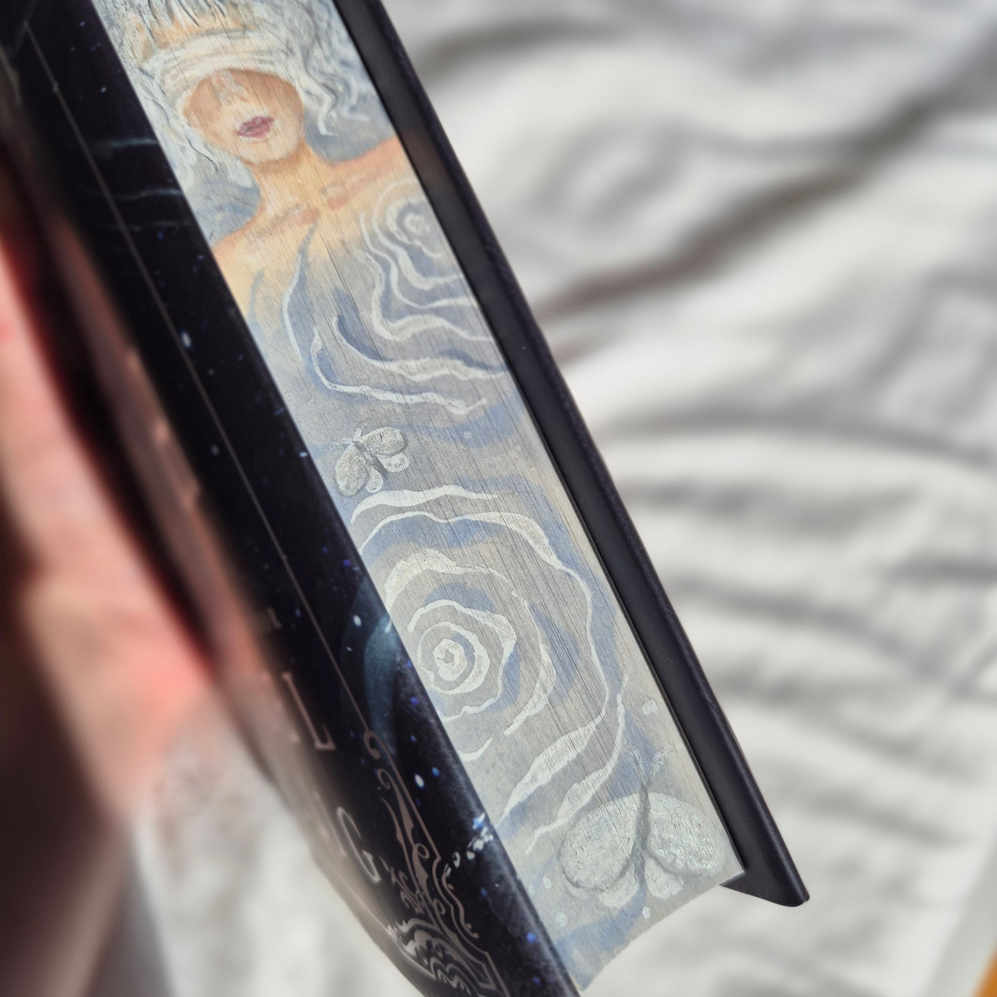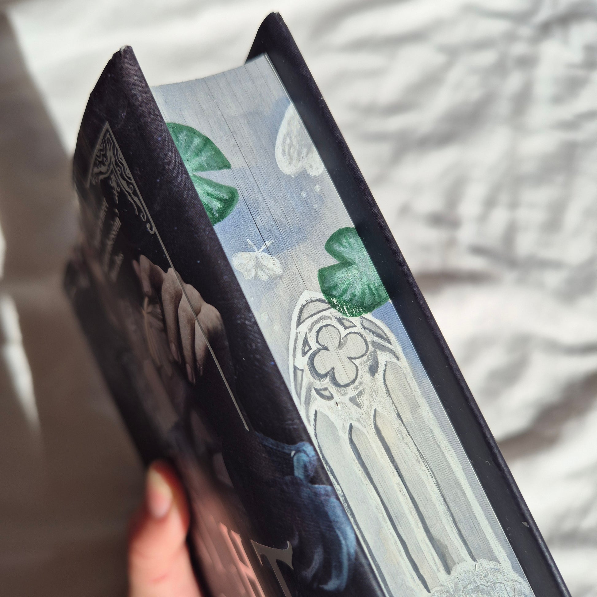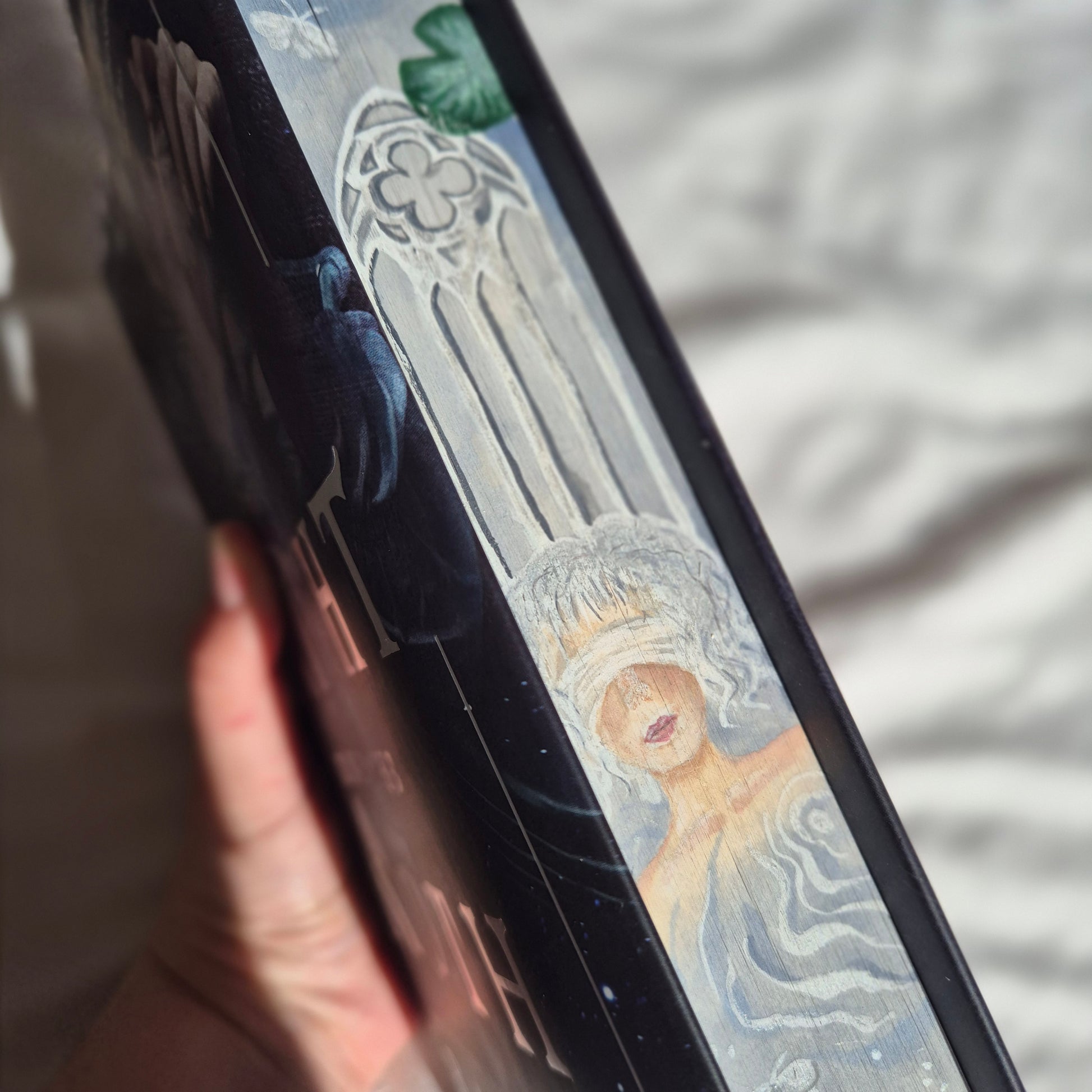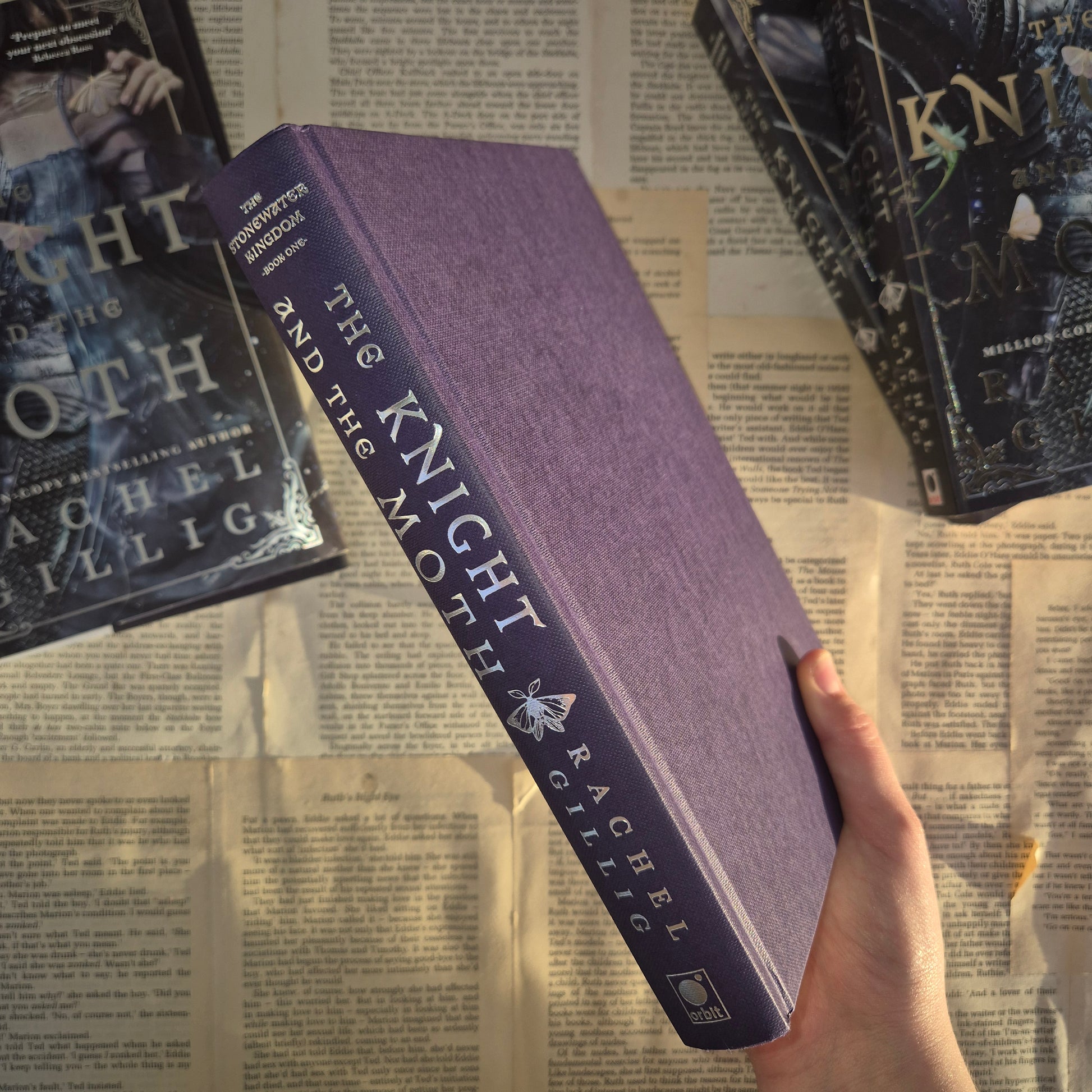 This is a watercolour hand-painted hardcover of Rachel Gillig's Knight and the Moth.