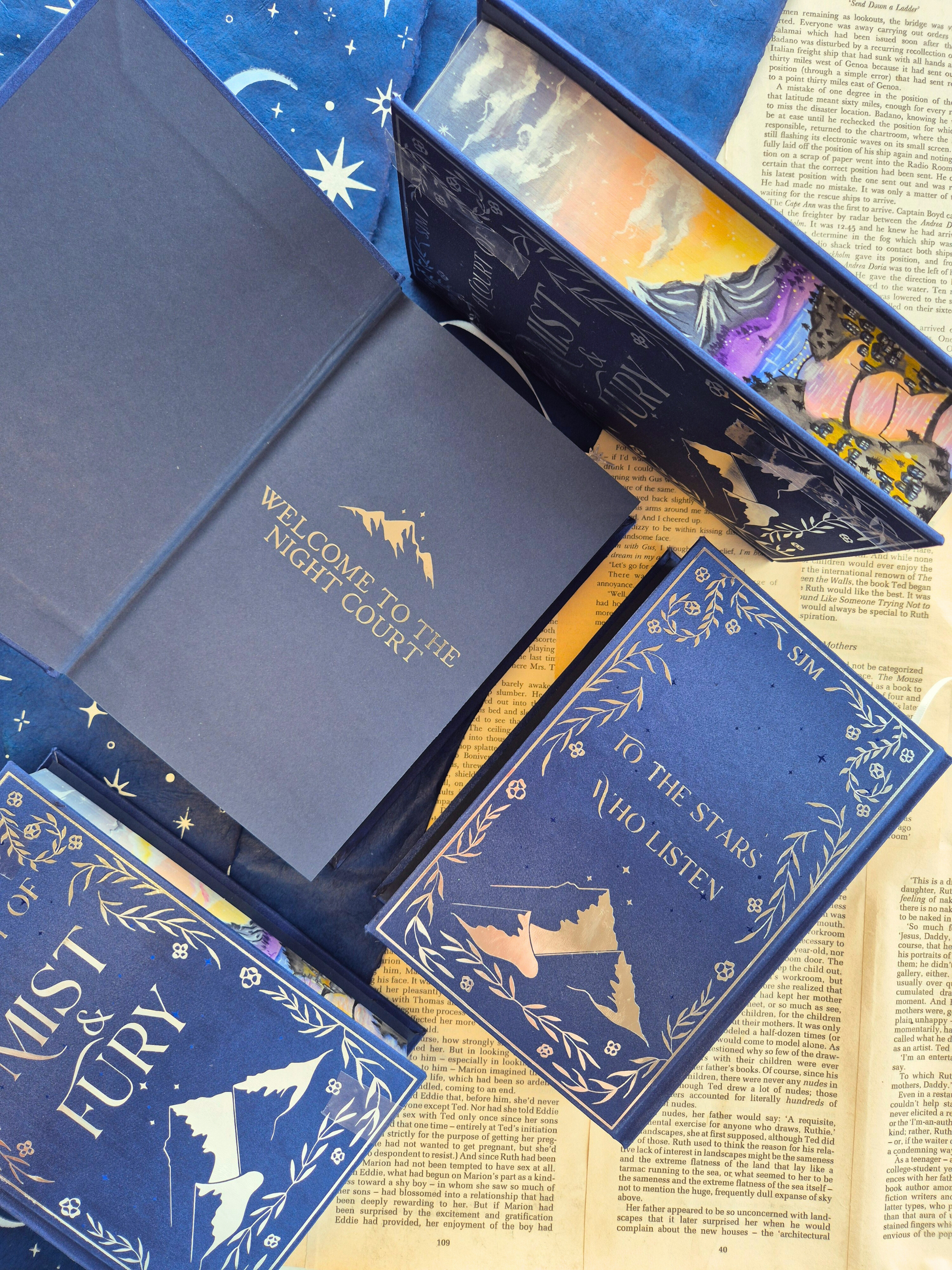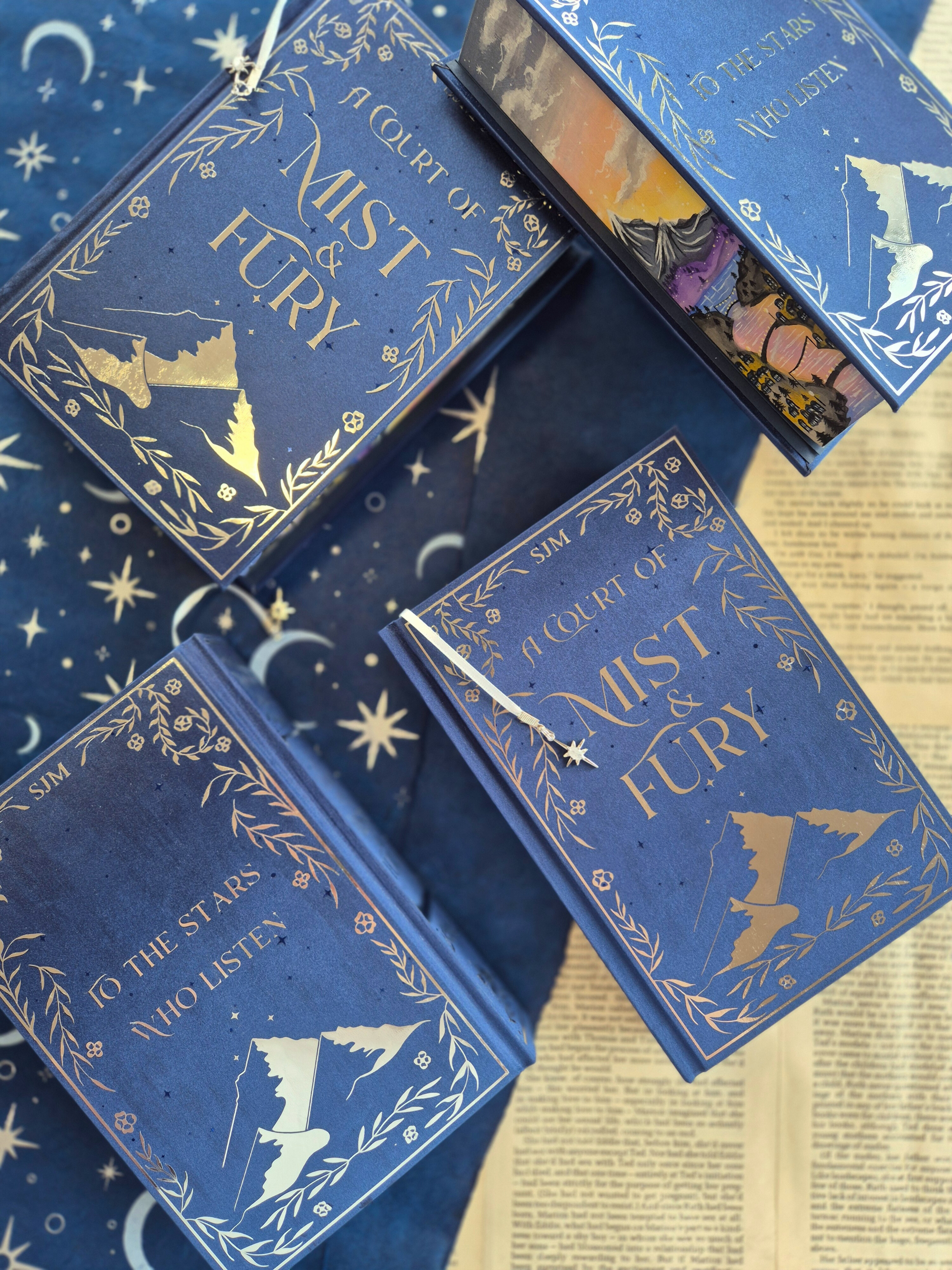 This are my rendition of 'The Night Court Edition' books by Sarah. J. Maas, I wanted to create something that truely incapsulated the feeling and the world of Velaris and the Night Court, so I decided to make a limited run of only 4 ACOMAF books with my personal take on the 'Night Court Edition' and what that looks like in my head.
