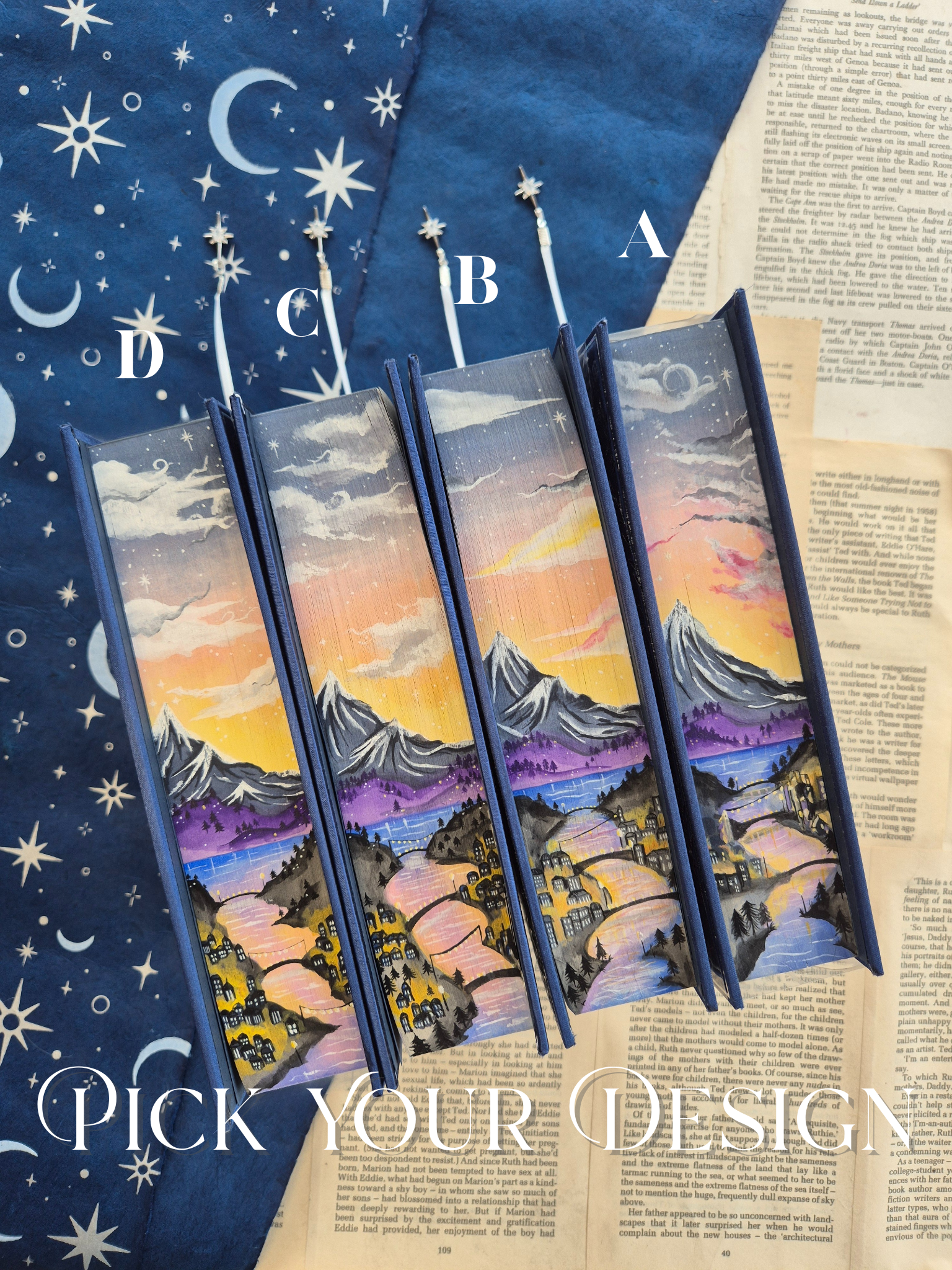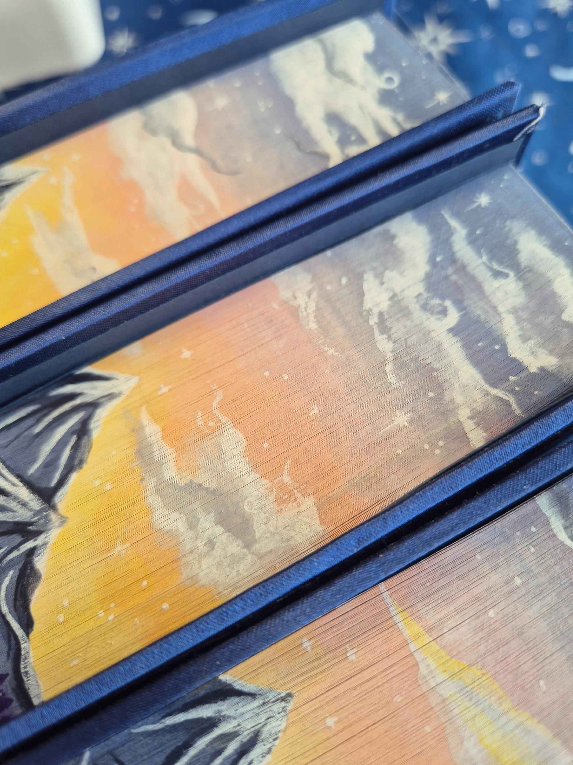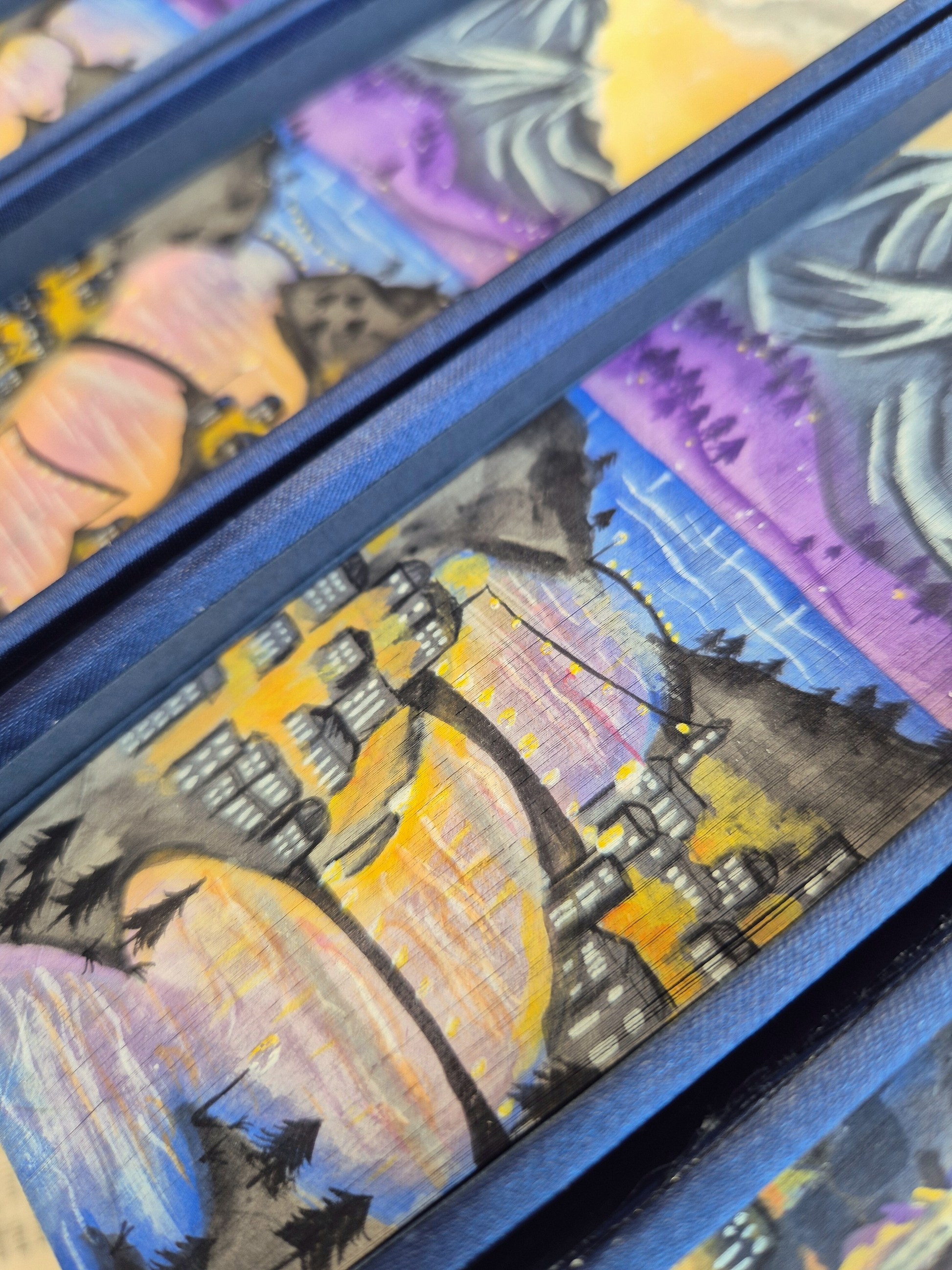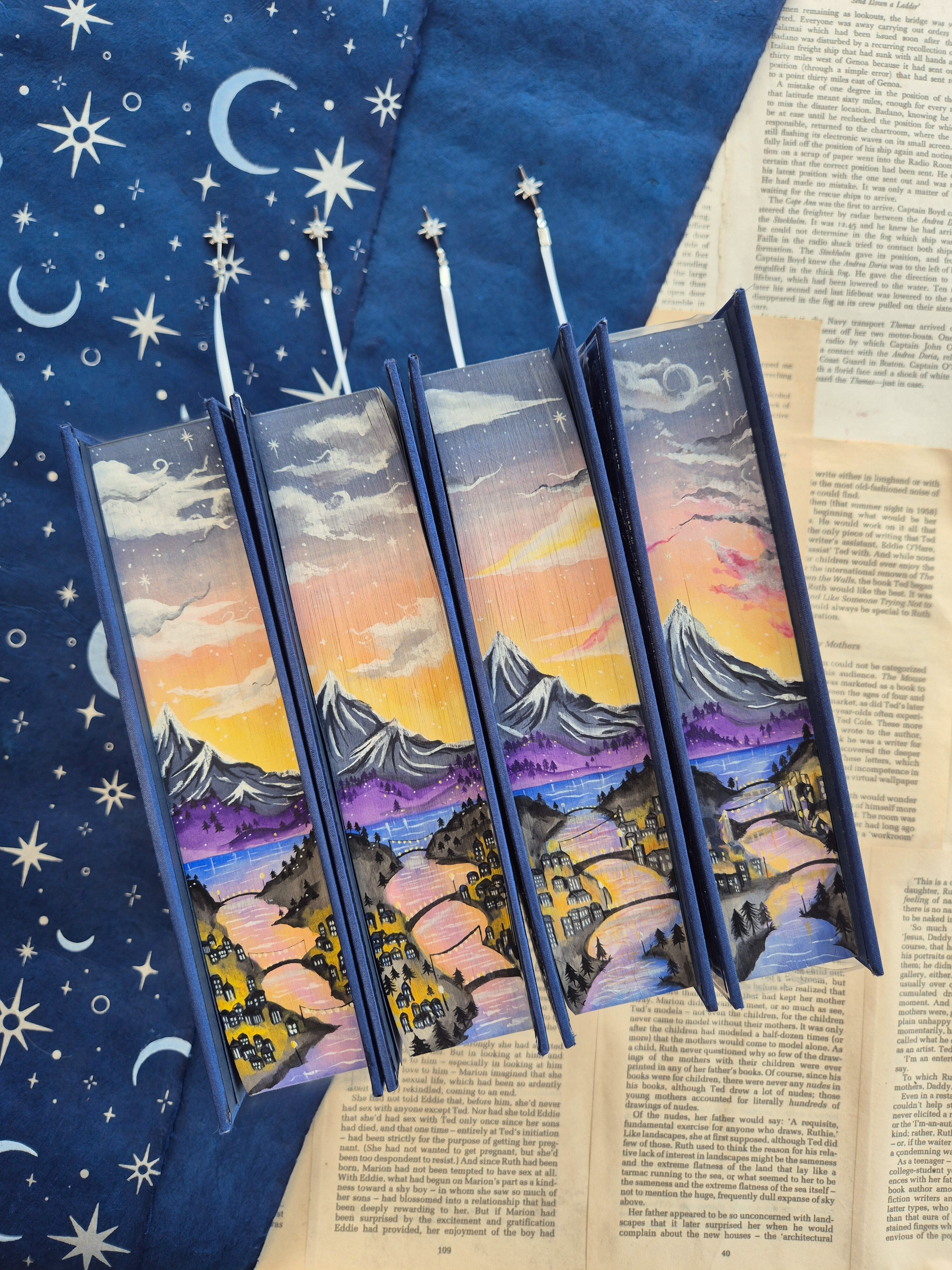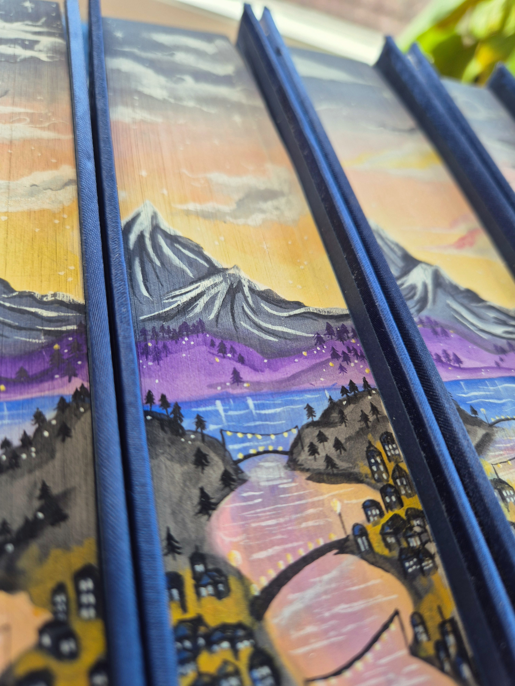 🏘 Each edge painting is completely unique and has an incredibly small and detailed depiction of Velaris and the river that twists and flows through the beautiful night court