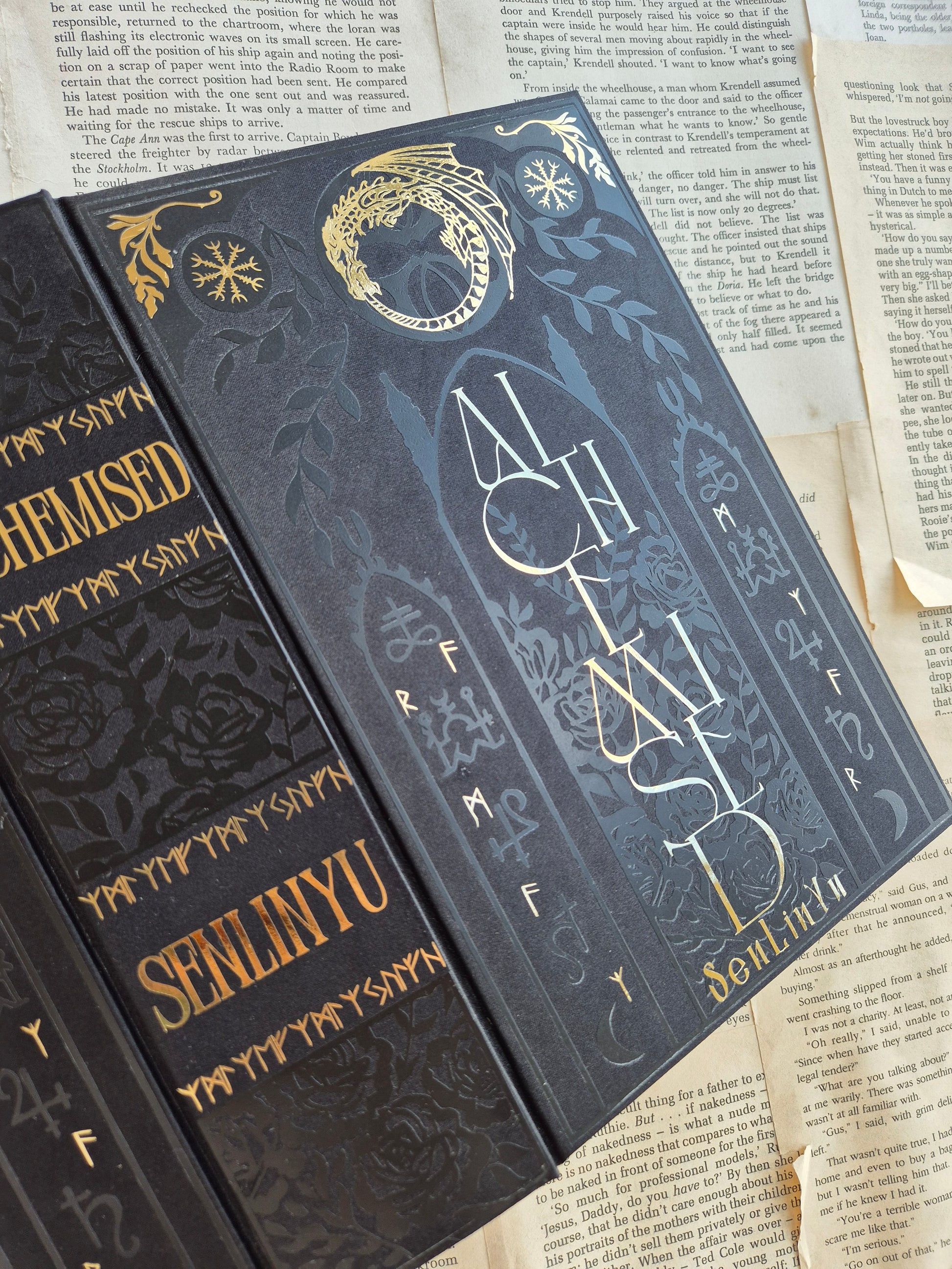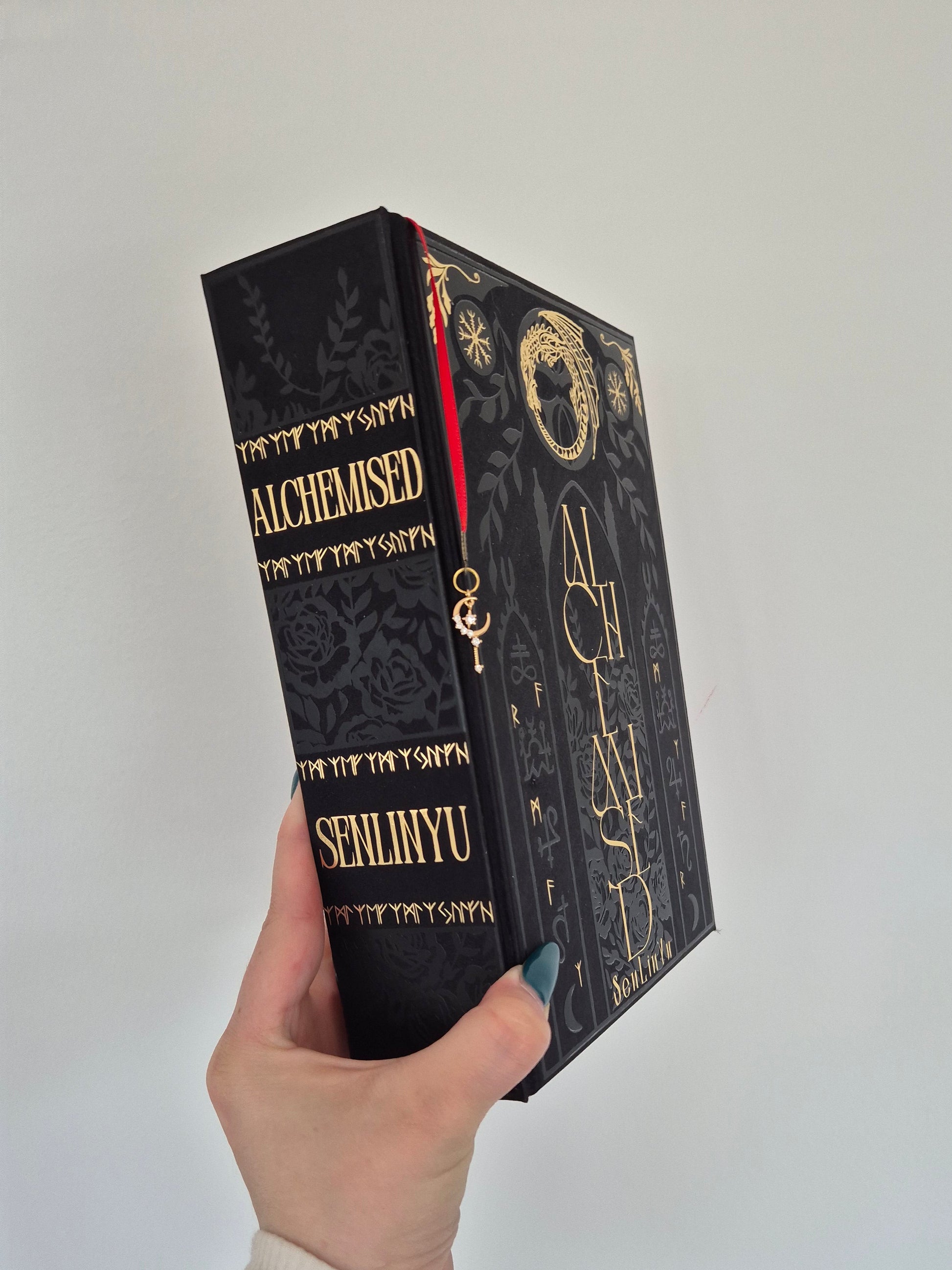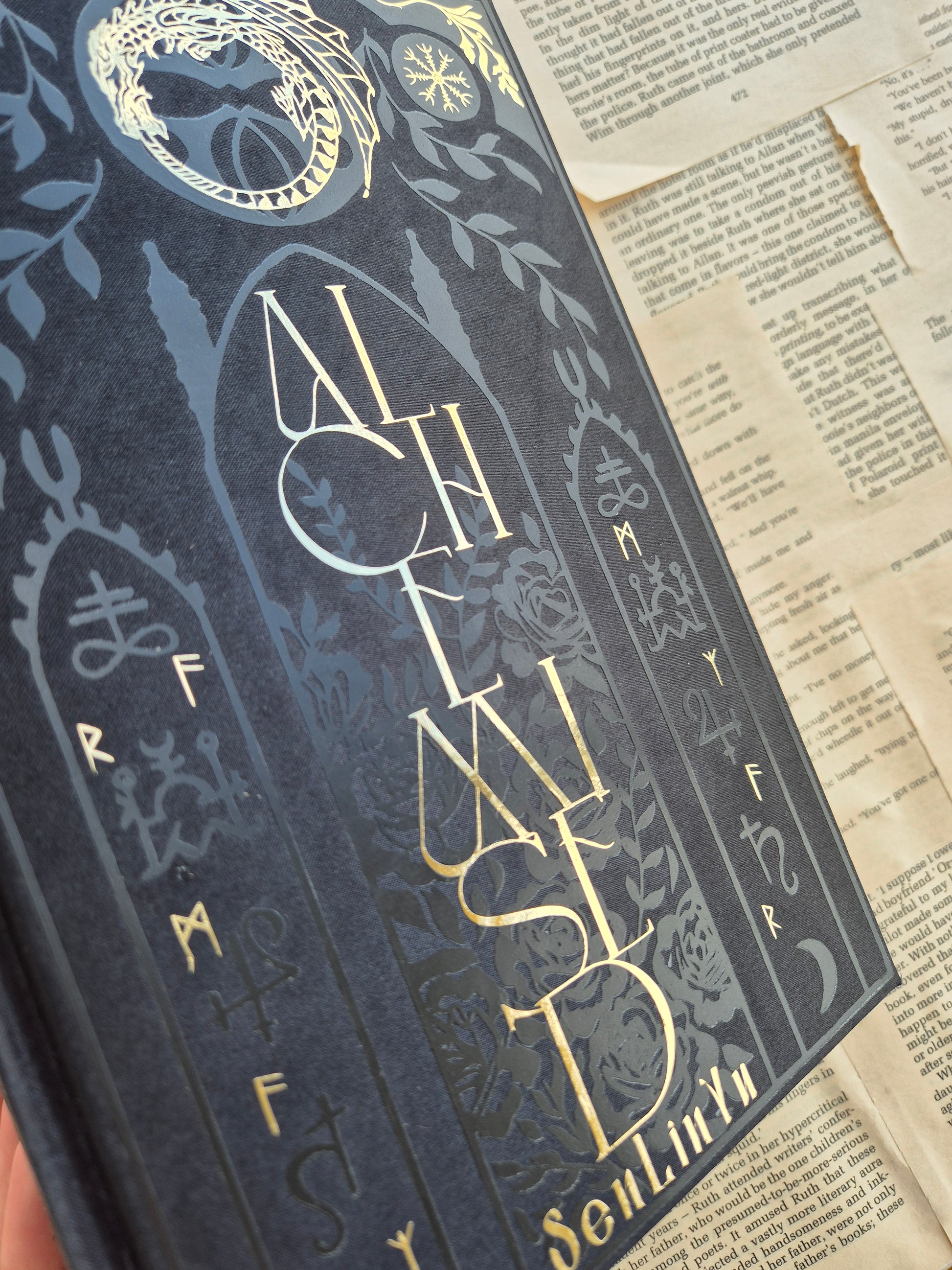 This is a custom rebind in collaboration with Karina Giada, of the novel 'Alchemised' by SenLinYu. The rebind is made by hand by Beautifully Bound by Sophie.