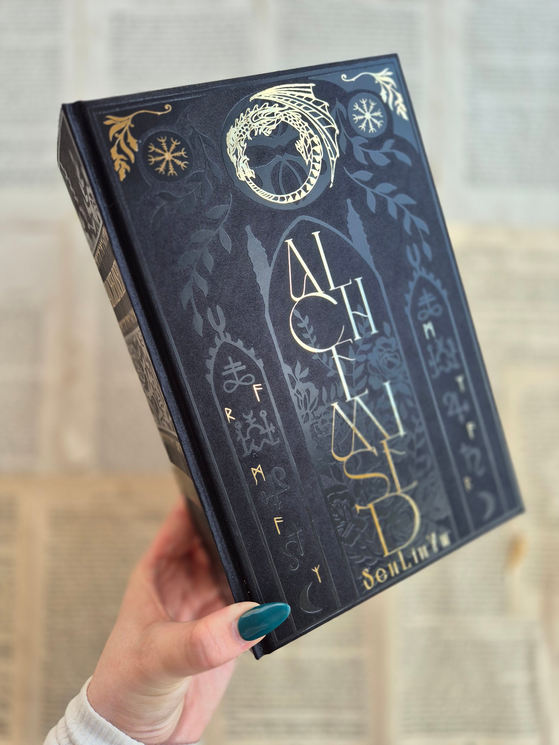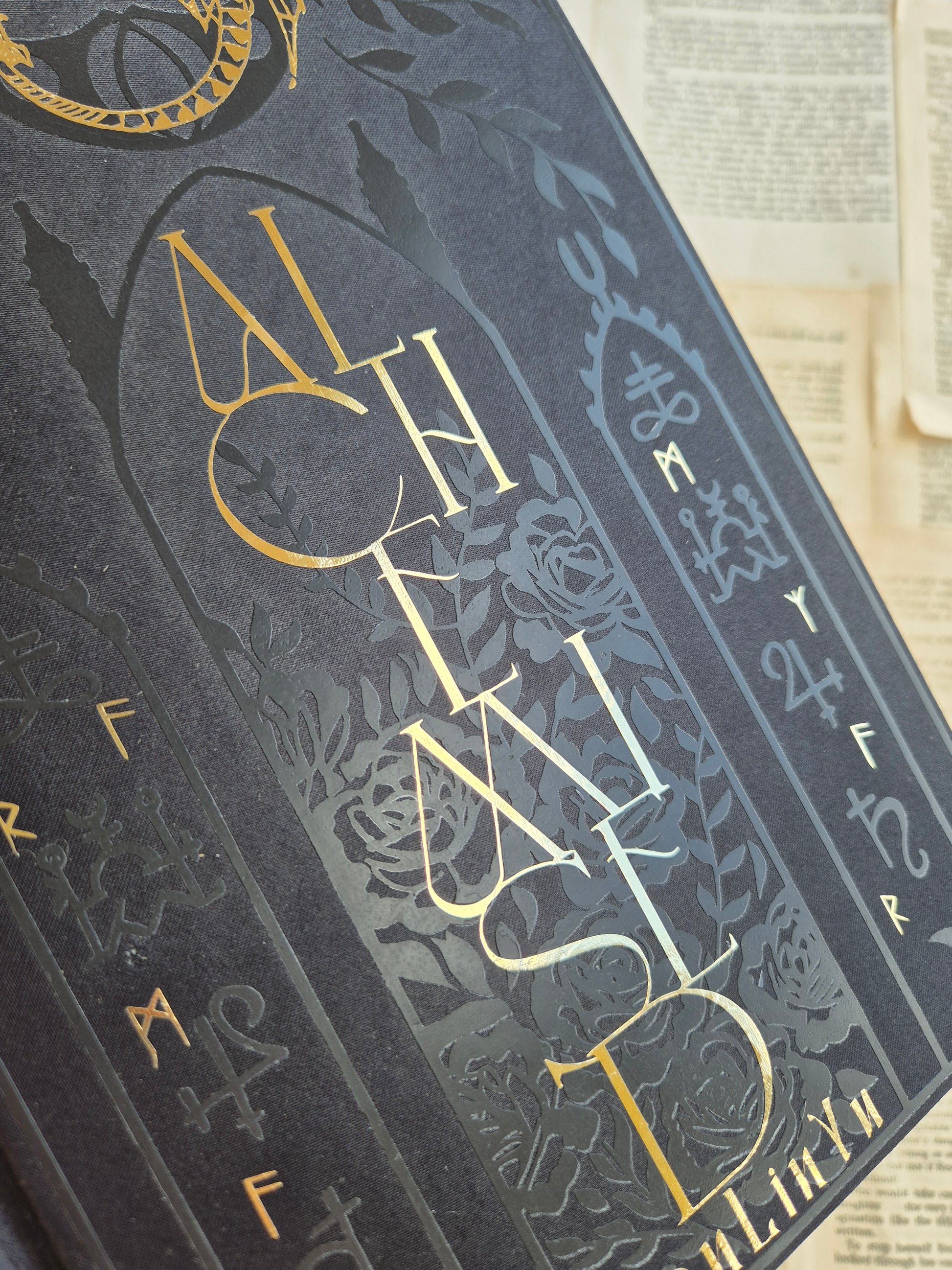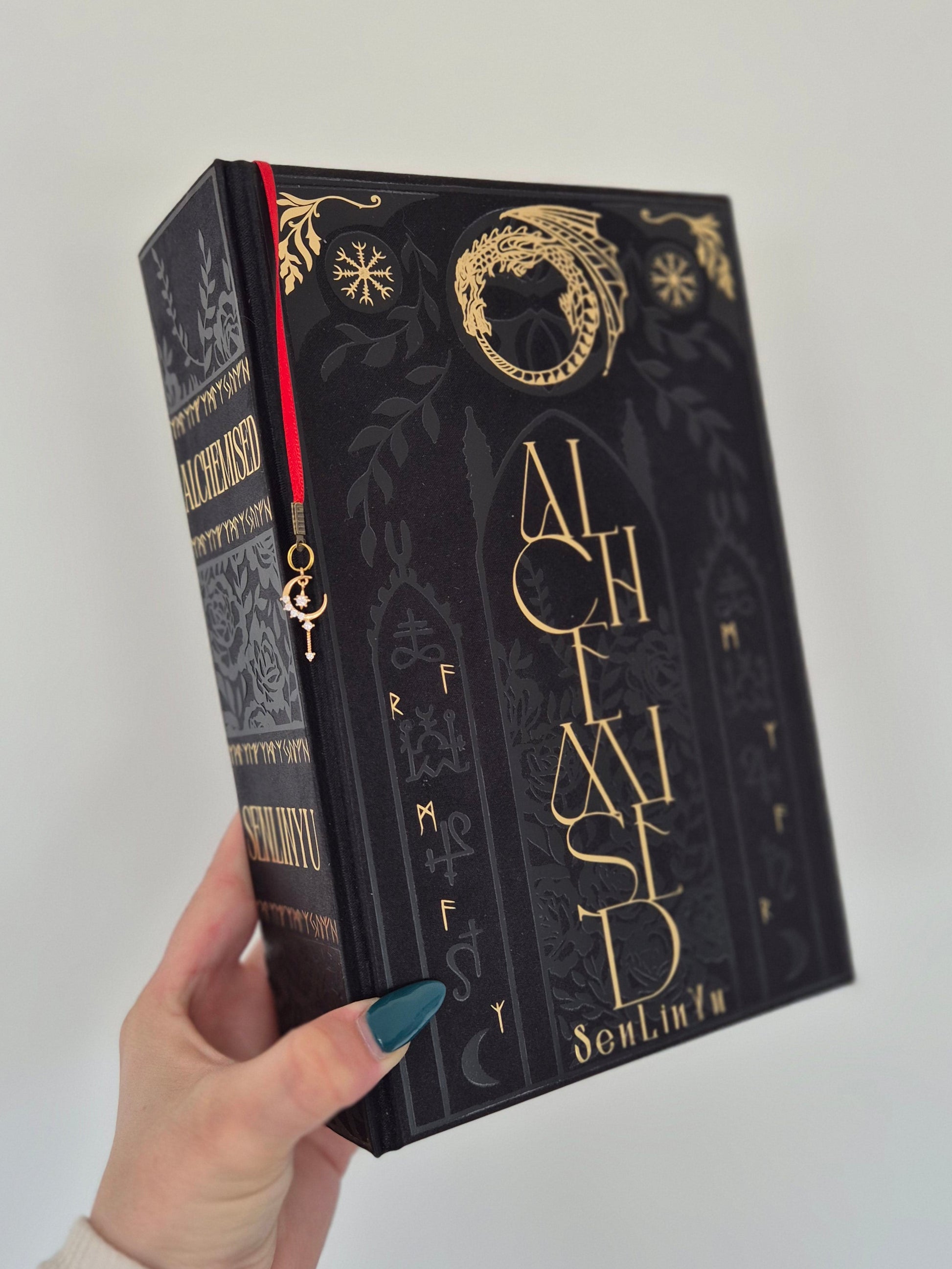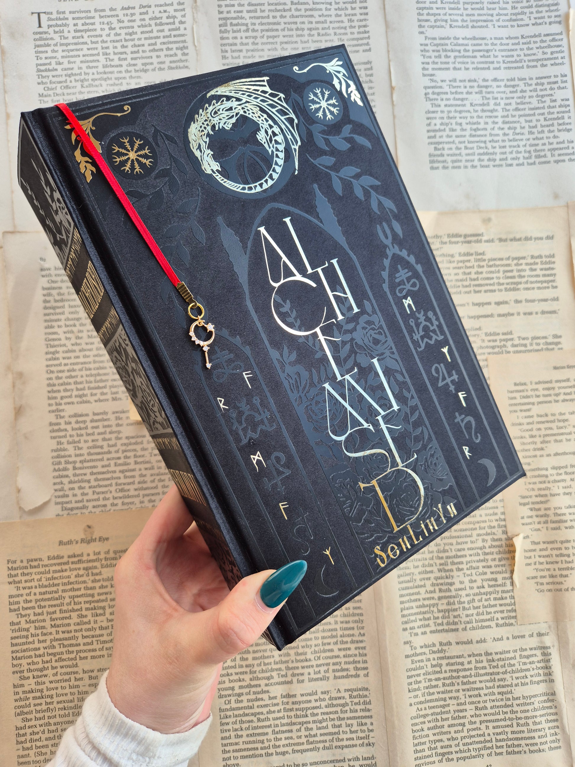 This is a custom rebind in collaboration with Karina Giada, of the novel 'Alchemised' by SenLinYu. The rebind is made by hand by Beautifully Bound by Sophie.