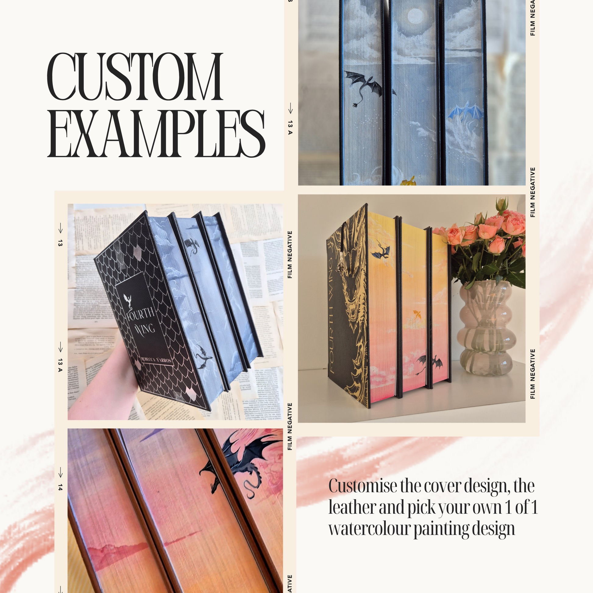 Get your own customised Fourth Wing set with hand painted edges. Everything is customisable