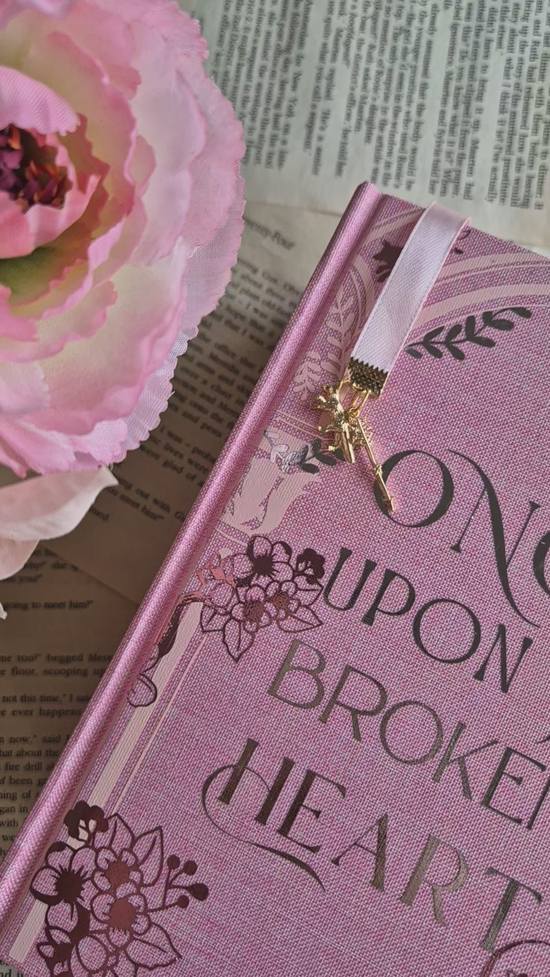 It includes pink map endpapers, gold plated charms of a fox and a crystal styled arrow and a silk pink book ribbon.