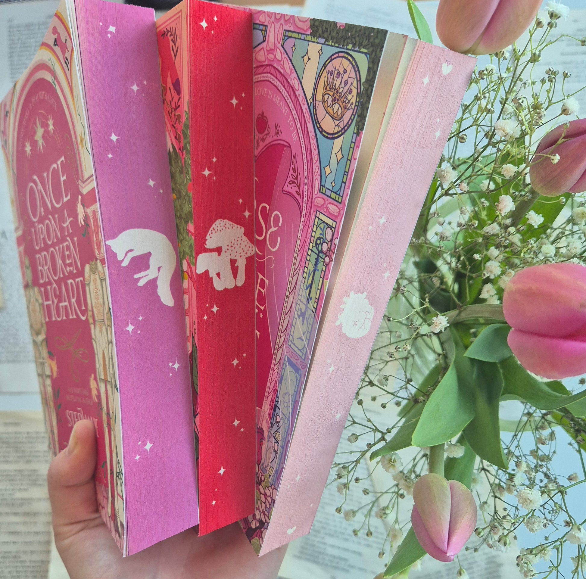 These are hand done sprayed edges on the trilogy of the 'Once Upon a Broken Heart' trilogy on the 12.8 x 19.6 cm editions.