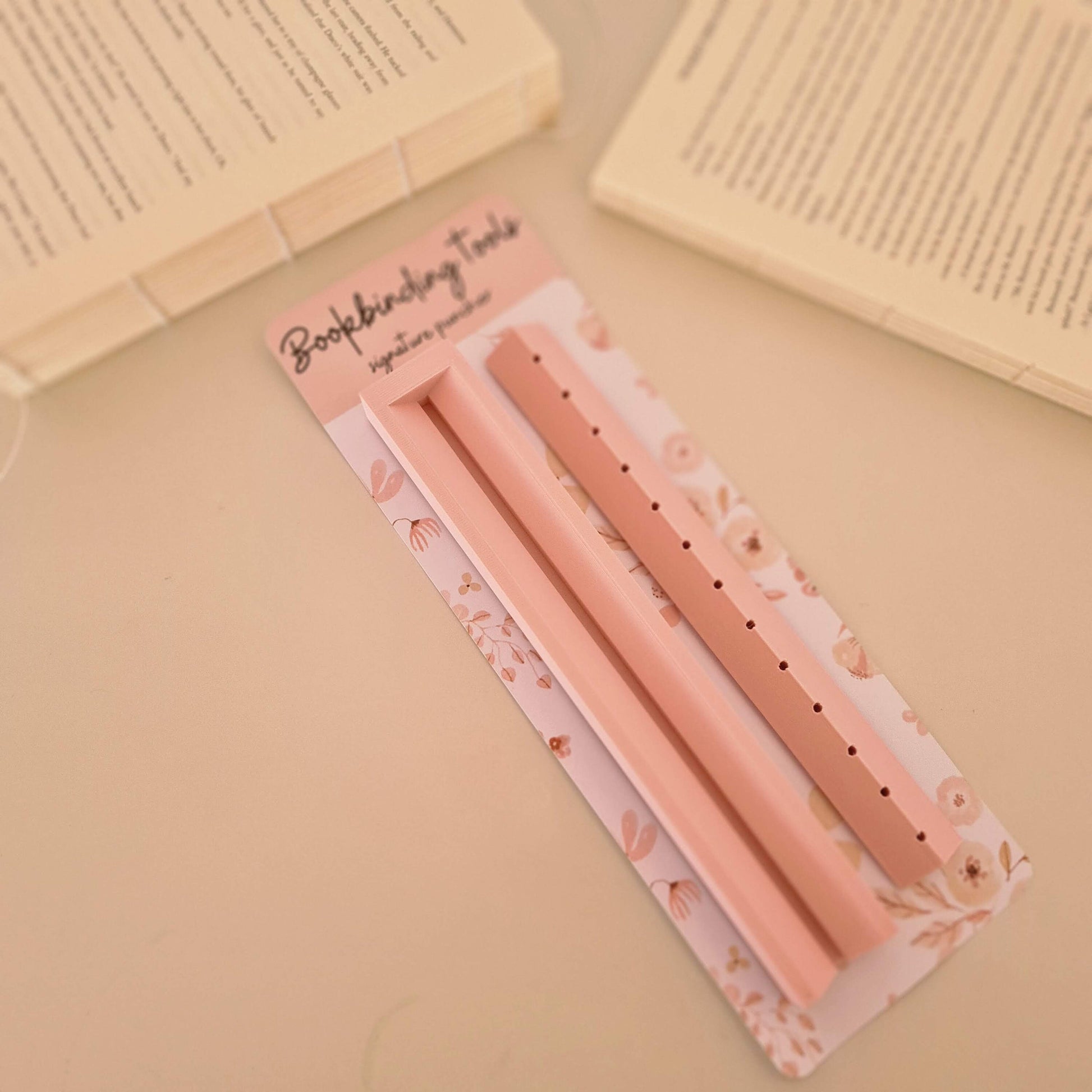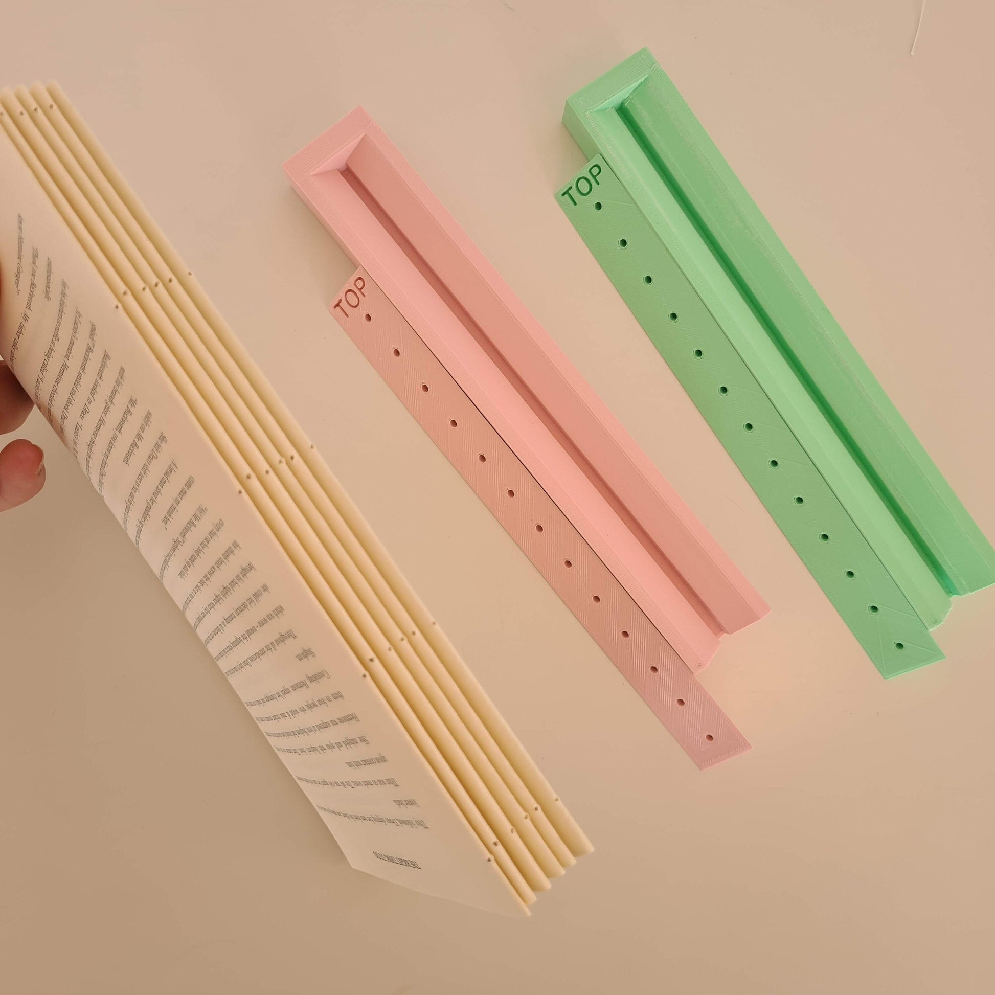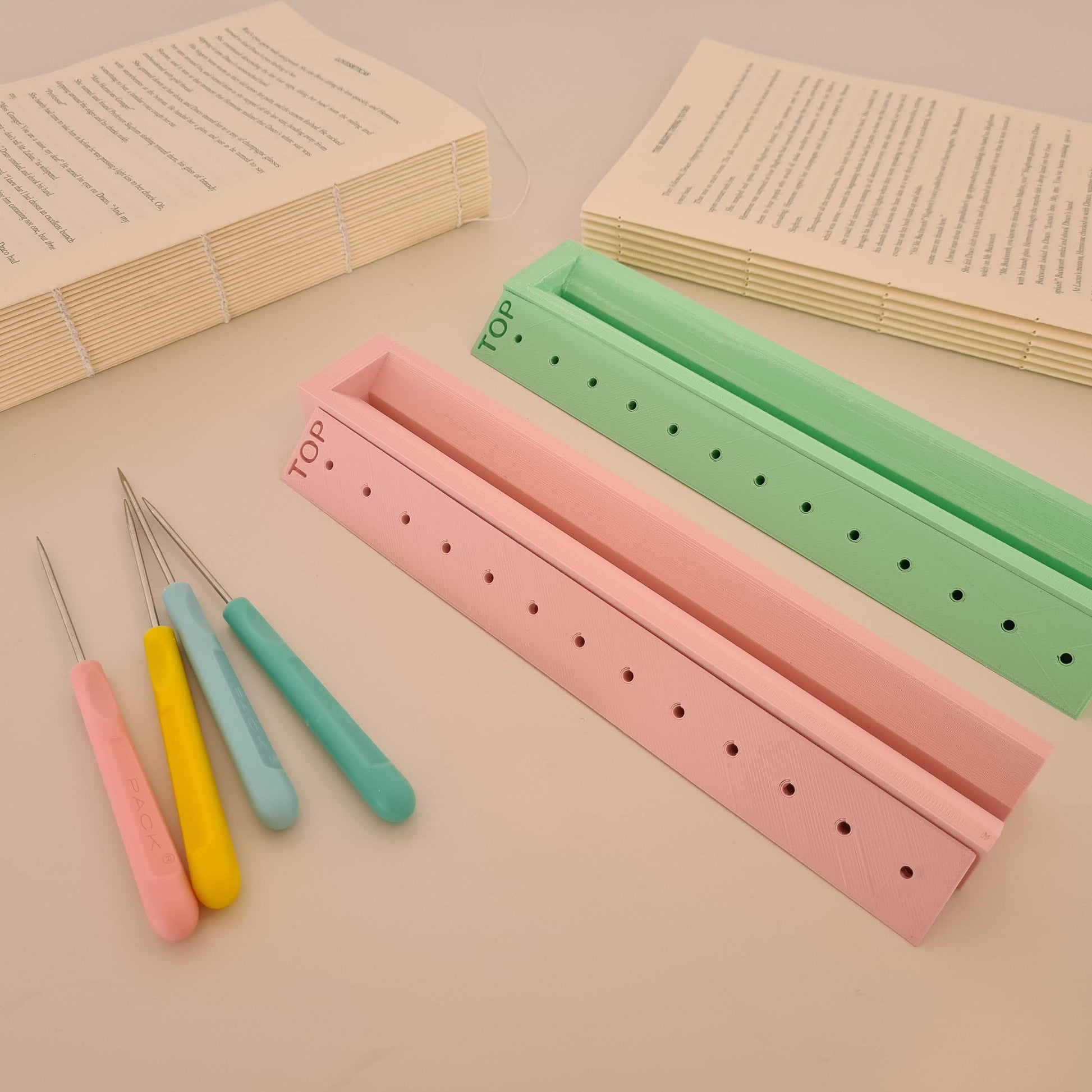 This is a 3D printed tool to assist in punching even and perfect holes in your signatures, this has been designed and printed by me, I have made sure to make a product that results in even and consistent holes throughout your text-block resulting in an even sewing experience.