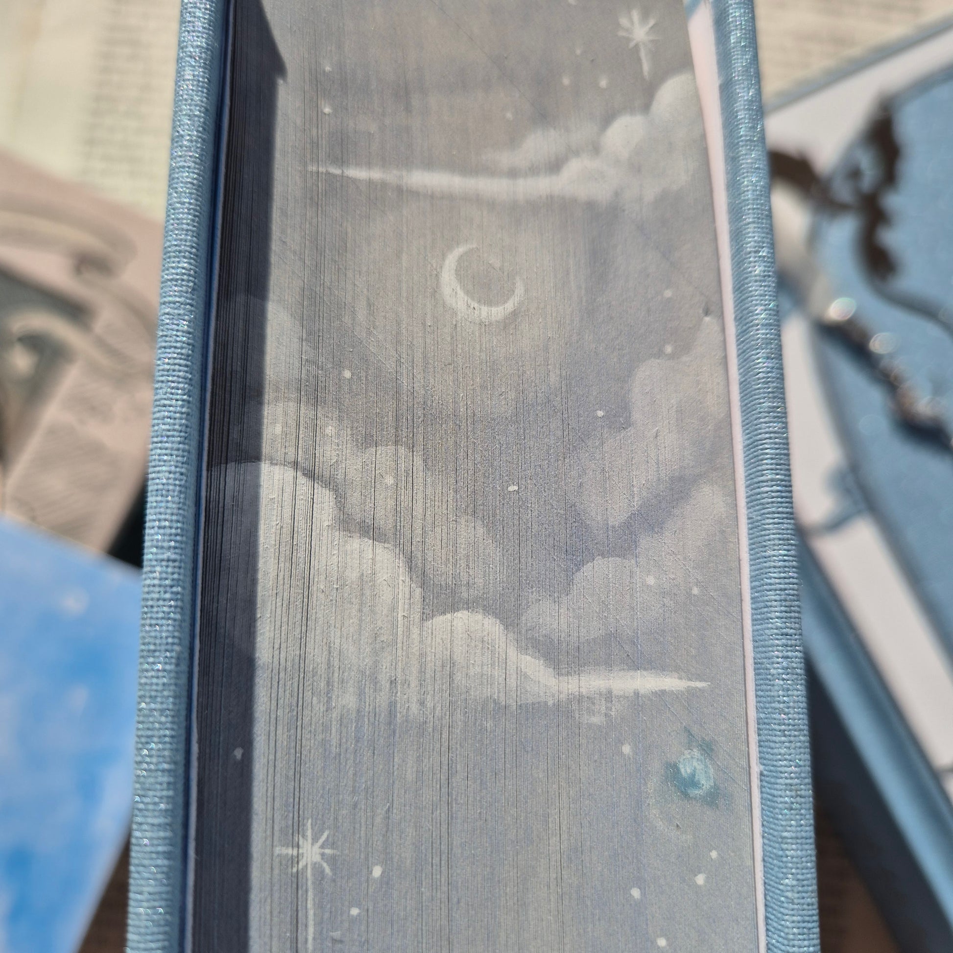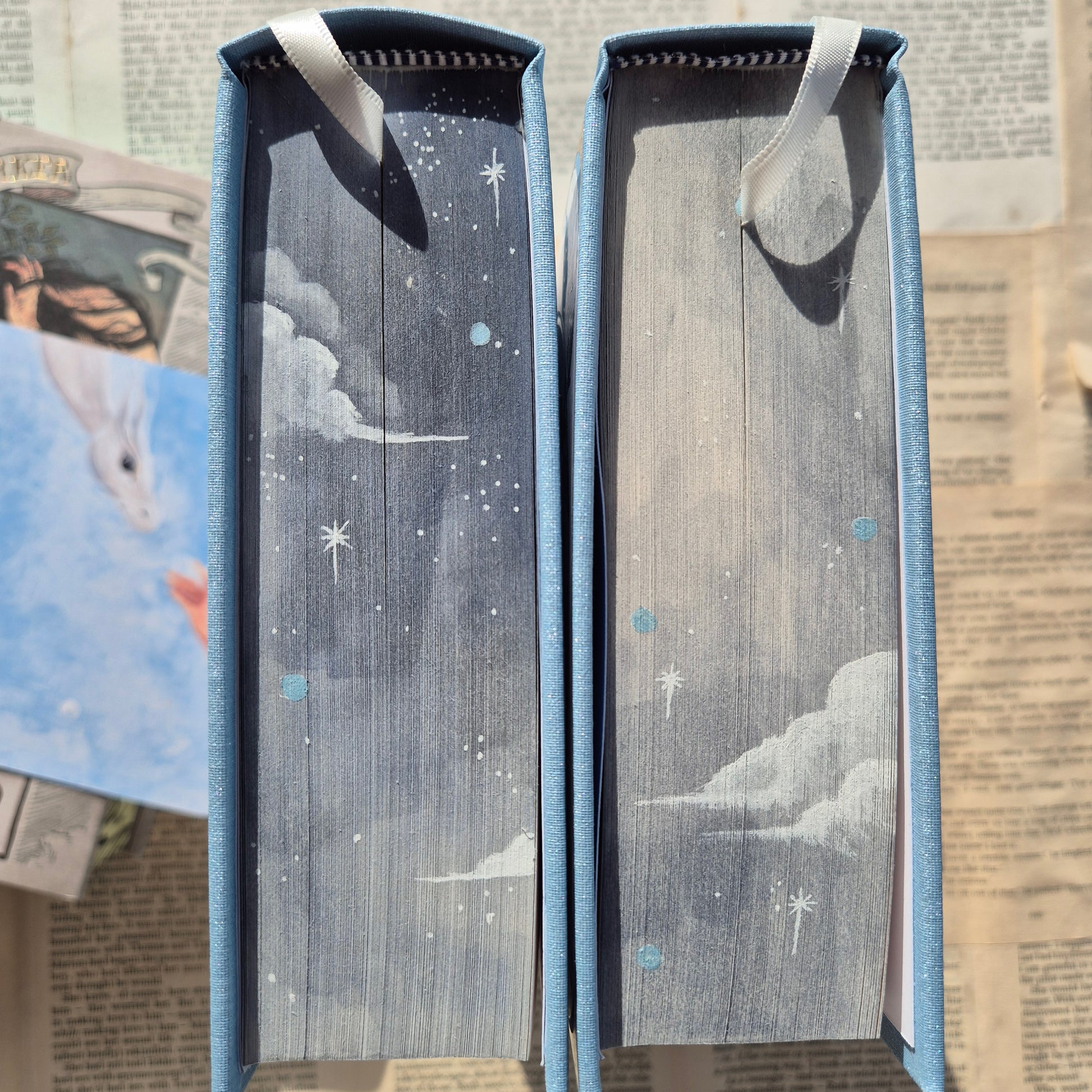 Each painting will be slightly different from each other, each brush stroke unique. But they will all have the same image on the front and top of the book. The bottom of the book is blank.
